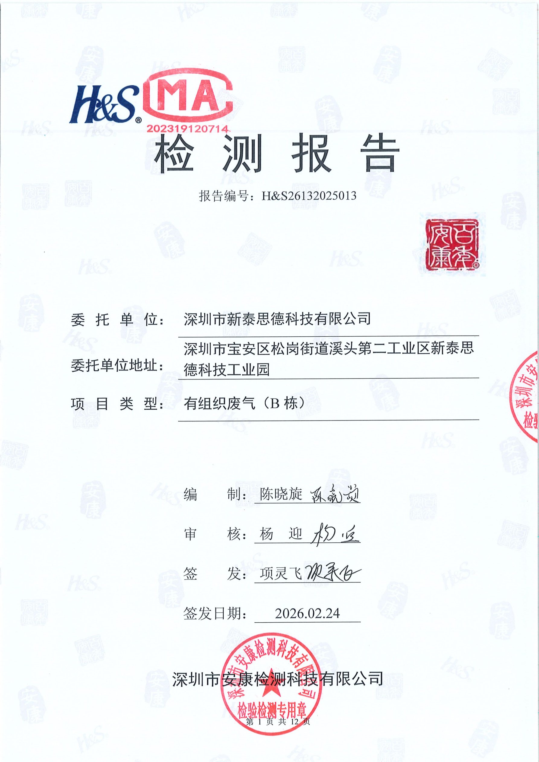 2026年2月有组织废气B栋检测报告12
